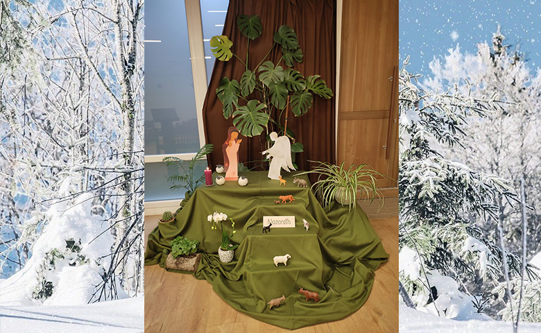 Cette année, à Montrouge, la crèche à la chapelle a été pensée de façon à ce que les jeunes qui passent dans la chapelle comprennent mieux ce que signifie le temps liturgique de l’Avent.