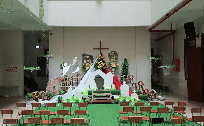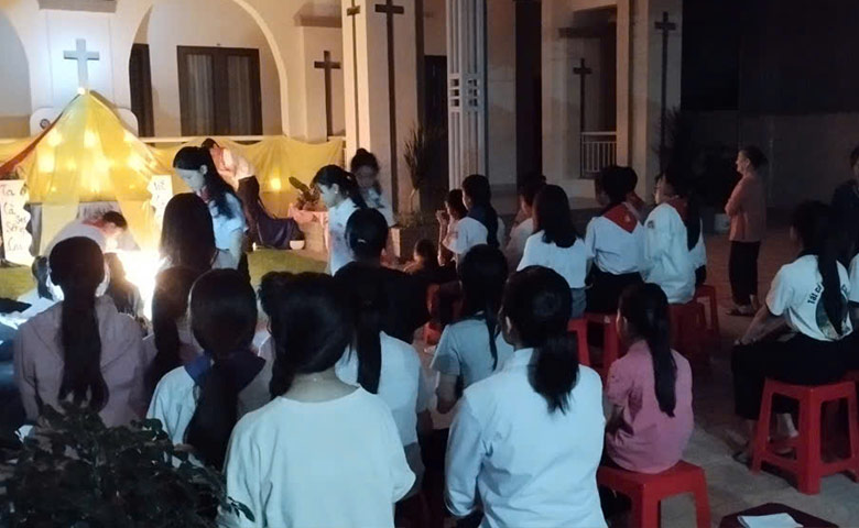 Au Vietnam, comme chaque année, nos Sœurs de Thu Duc ont organisé une soirée de prière avec les paroissiens qui souhaitaient y participer. Nos Soeurs ont très bien décoré le coin de prière pour la soirée.